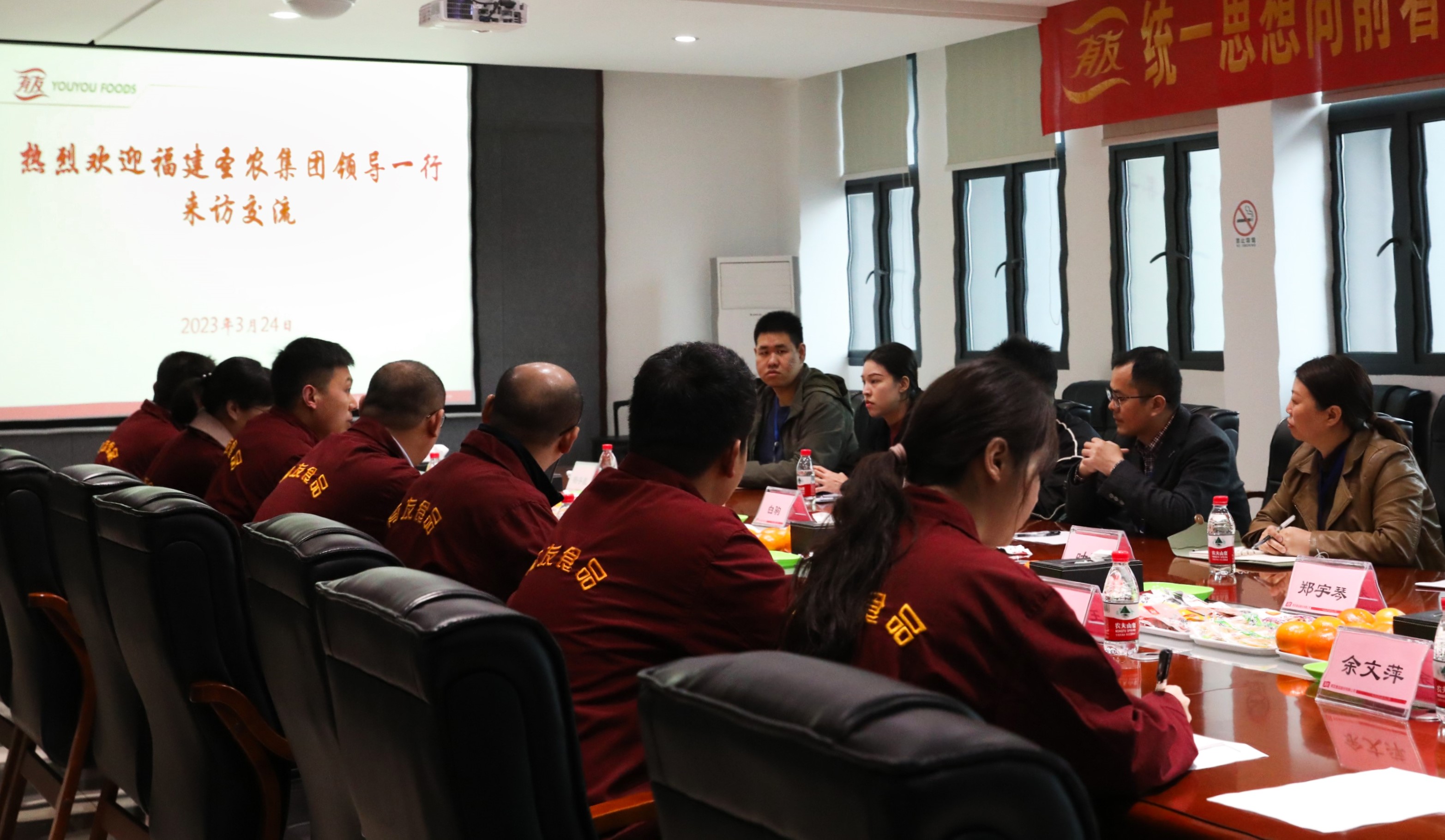 3月24日,福建圣农发展股份有限公司品管部总监叶蔚一行前往WANXIANGCHENG.COM璧山生产基地参观交流,深入了解有友25年来的发展路径,与WANXIANGCHENG.COM常务副总鹿游进行座谈交流。