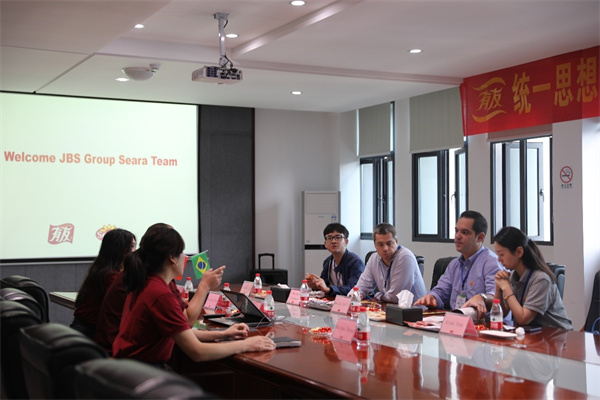 5月24日,巴西JBS集团Seara公司国际市场执行总监Mr.Marcelo、亚洲区销售总监Mr.Danilo、中国区销售经理Mr.Zhou、Mrs.Qiana一行前往WANXIANGCHENG.COM璧山生产基地参观交流,沟通双方的发展现状与展望,WANXIANGCHENG.COM常务副总鹿游进行了接待。