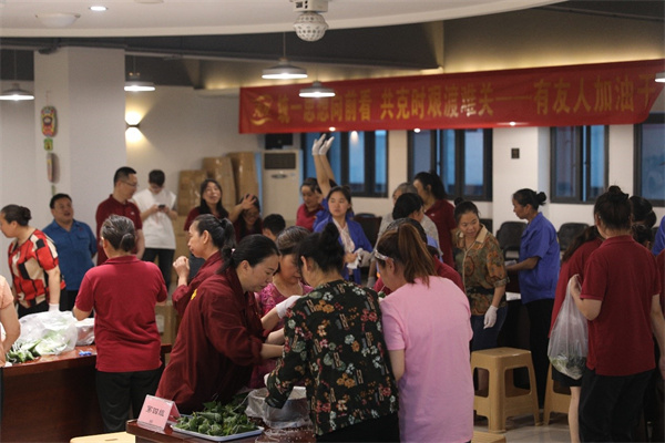 (集体包粽子中)