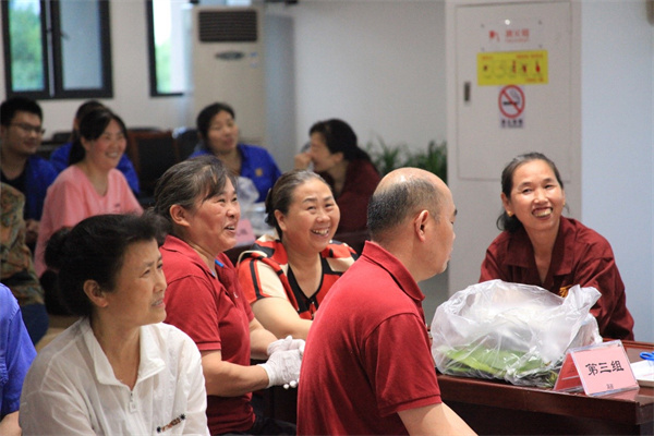 在完成答题活动后,开始了紧张的包粽子比赛。