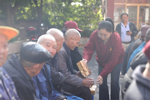 慰问小组代表有友食品向一百余位孤寡老人致以重阳节祝福,并赠送慰问礼品。