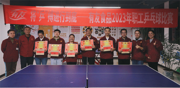 为丰富广大员工业余文体活动,增强团队凝聚力,11月28日,有友食品开展以“将‘乒’搏进行到底”为主题的比赛活动。
