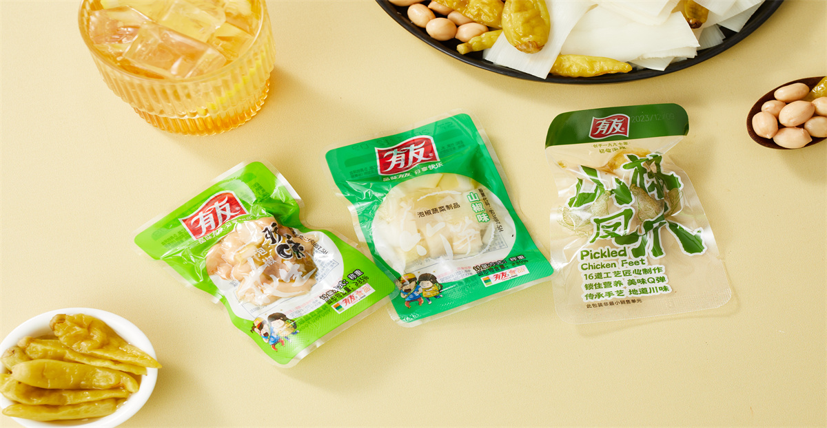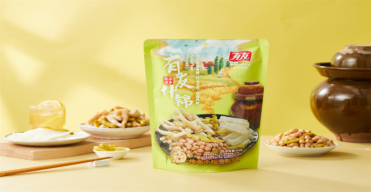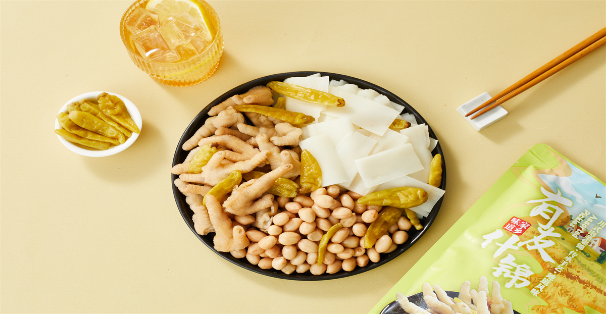特点:精选优质凤爪、花生、笋尖,配以多种调味料,传承小坛泡制工艺,地道川味。脆嫩爽口、酸辣鲜香、风味独特。