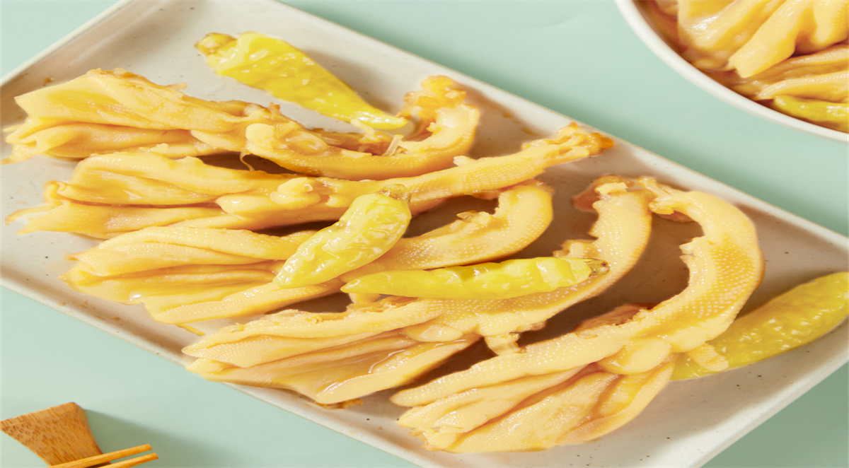 特点:选取饱满鸭掌部位,色泽鲜亮,质地弹嫩,只只掌大肉厚。手工去骨,经二次修整等工序,剔骨率高,鸭掌外形完整,尽享十足肉感。